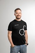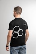 Musta t-paita rengaskehrätystä pitkäkuituisesta puuvillasta, 185 g/m². Näyttävä edestä taakse ulottuva painatus.