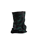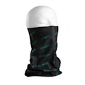 Mustavihreä tuubihuivi Genelecin logoilla. Elastista ja saumatonta huivia voidaan käyttää mm. päähineenä, pantana, kasvojen suojana tai hiuslenkkinä.