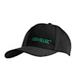 Musta baseball-lippis. Genelec-brodeeraus edessä vasemmalla, ilmanvaihtorei´itys sivupaneeleissa ja tarrakiinnitys takana.